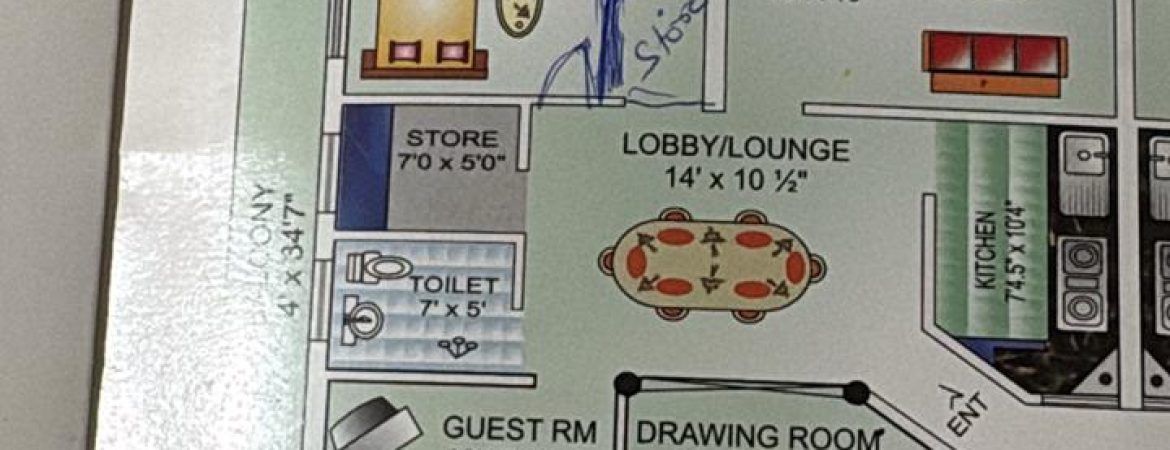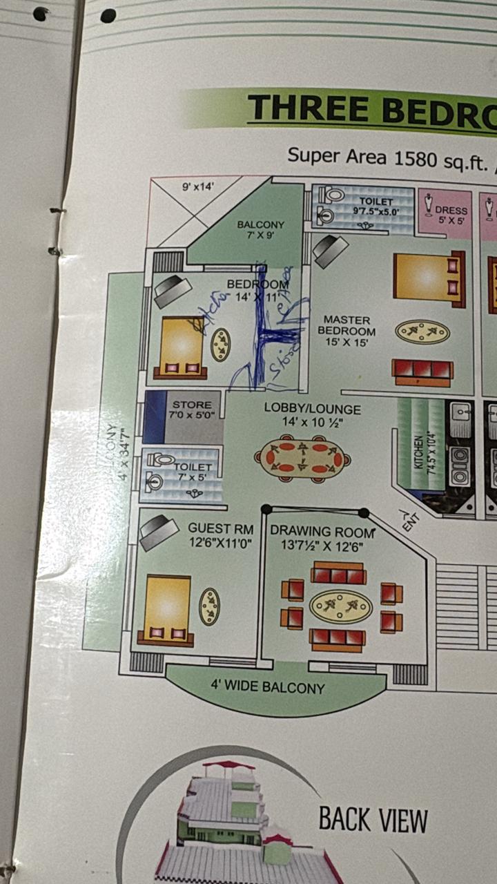 This flat is very spacious and it has 3 bedrooms, 1 drawing room, 2 bathrooms, 1 kitchen, 1 store, and 2 balconies.